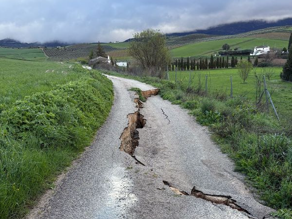 En el caso del camino público de ‘Cochinitas’, el número 211 del catálogo municipal de caminos públicos, se vio afectado por un tramo donde se produjo un desprendimiento de parte de su plataforma provocando un desnivel de casi metro metro, haciendo inviable el tránsito de vehículos. En el camino de Ronda a Cartajima, el número 223, los daños son socavones y desprendimientos a lo largo de 600 metros en una de las principales vías de comunicación con el Partido Rural Rosalejo, numerosas viviendas y explotaciones.