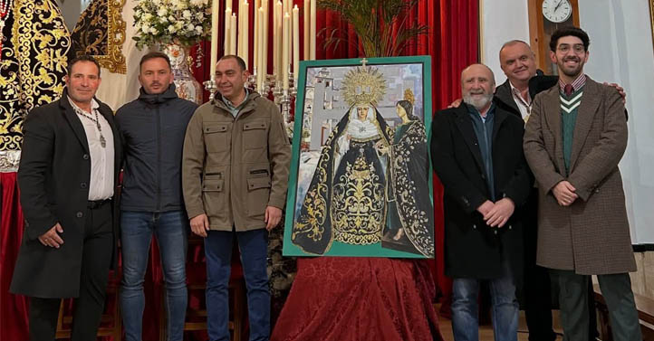 Se trata de una pintura realizada en acuarela sobre papel de algodón que protagoniza la imagen de la Virgen de los Dolores y San Juan. Además, destacan los colores verde y negro, propios de la Hermandad de la Vera+Cruz encargada este año de anunciar la Semana Santa de Alcalá del Valle.